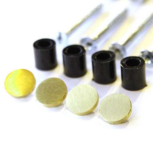 Nu apart verkrijgbaar setje sierschroeven met afdekkapjes van GOUD incl. zwarte afstandhouders. Het magneetbord komt 0,5 cm van de muur af.