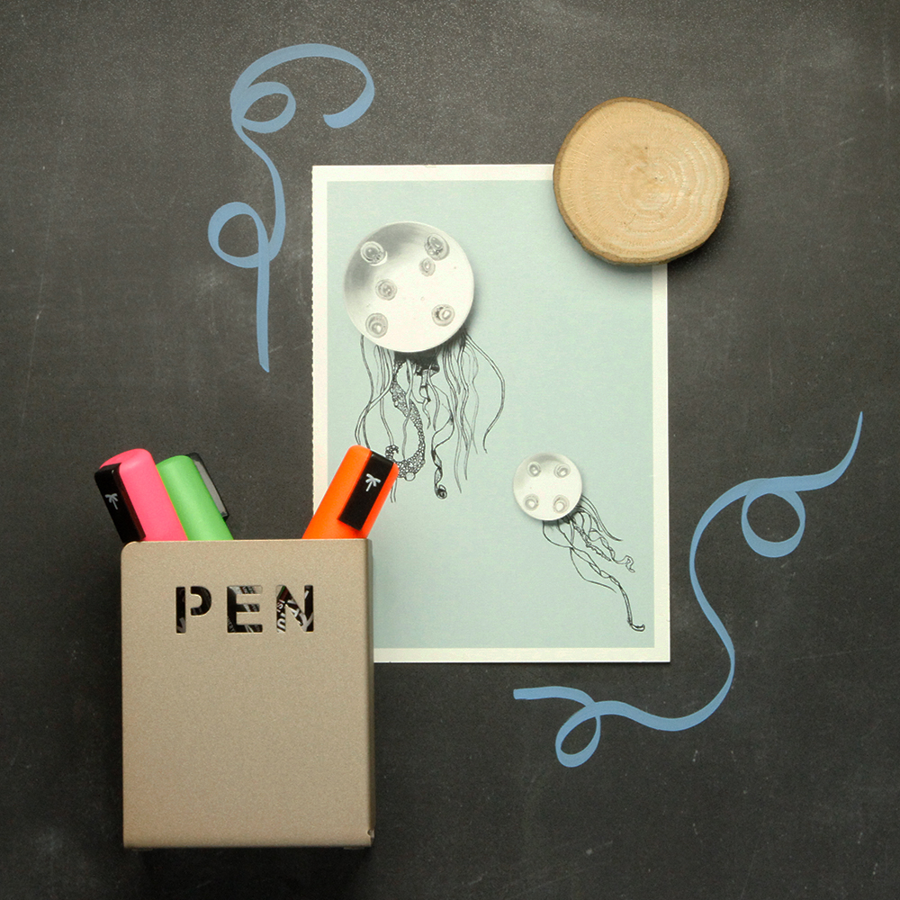 Het magneetbakje PEN KOPER METAAL is speciaal voor onze magneetborden en magneet-krijtbehang (zelfklevend) ontworpen voor het bewaren van de kleine accessoires bij je magneetbord. Bewaar hier je stiften en magneten. Het ziet er ook nog leuk uit op je bord. En makkelijk ook, je kunt er met krijtstift opschrijven wat erin zit!
