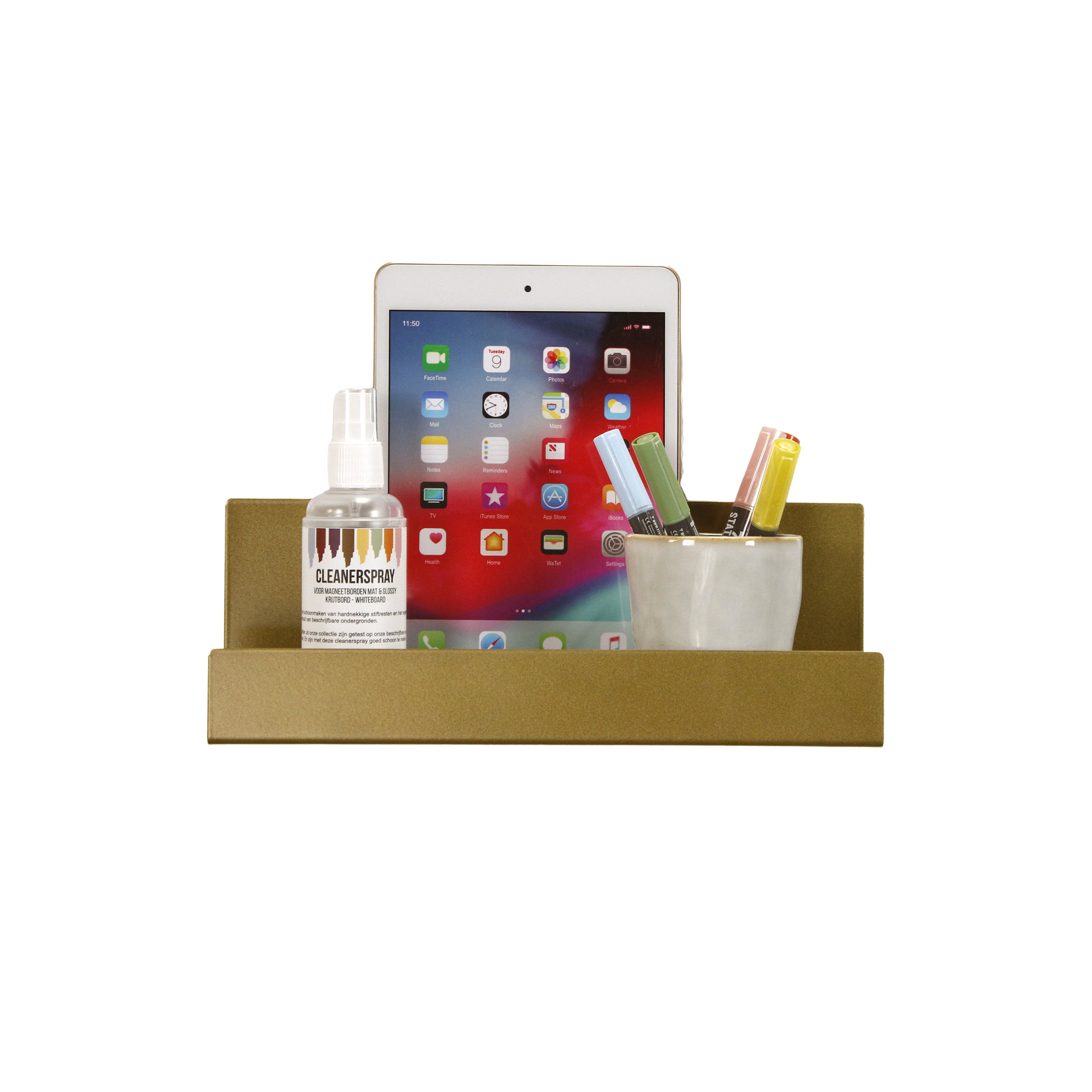 Onze magnetische boekenplank goud is ontworpen in ons atelier en geproduceerd van stevig staal, strak gecoat in goud. Echt een mooi exemplaar op je magneetbord of magneetwand.