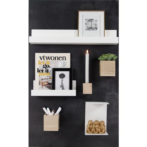 Create & style – Maak met de magnetische boekenplank wit medium een leuke styling op je magneetbord. In de woonkamer met tijdschriften, in de keuken met kookboeken en ipad, in de badkamer voor alle badaccessoires, in de hal met praktische items voor bij het weggaan.