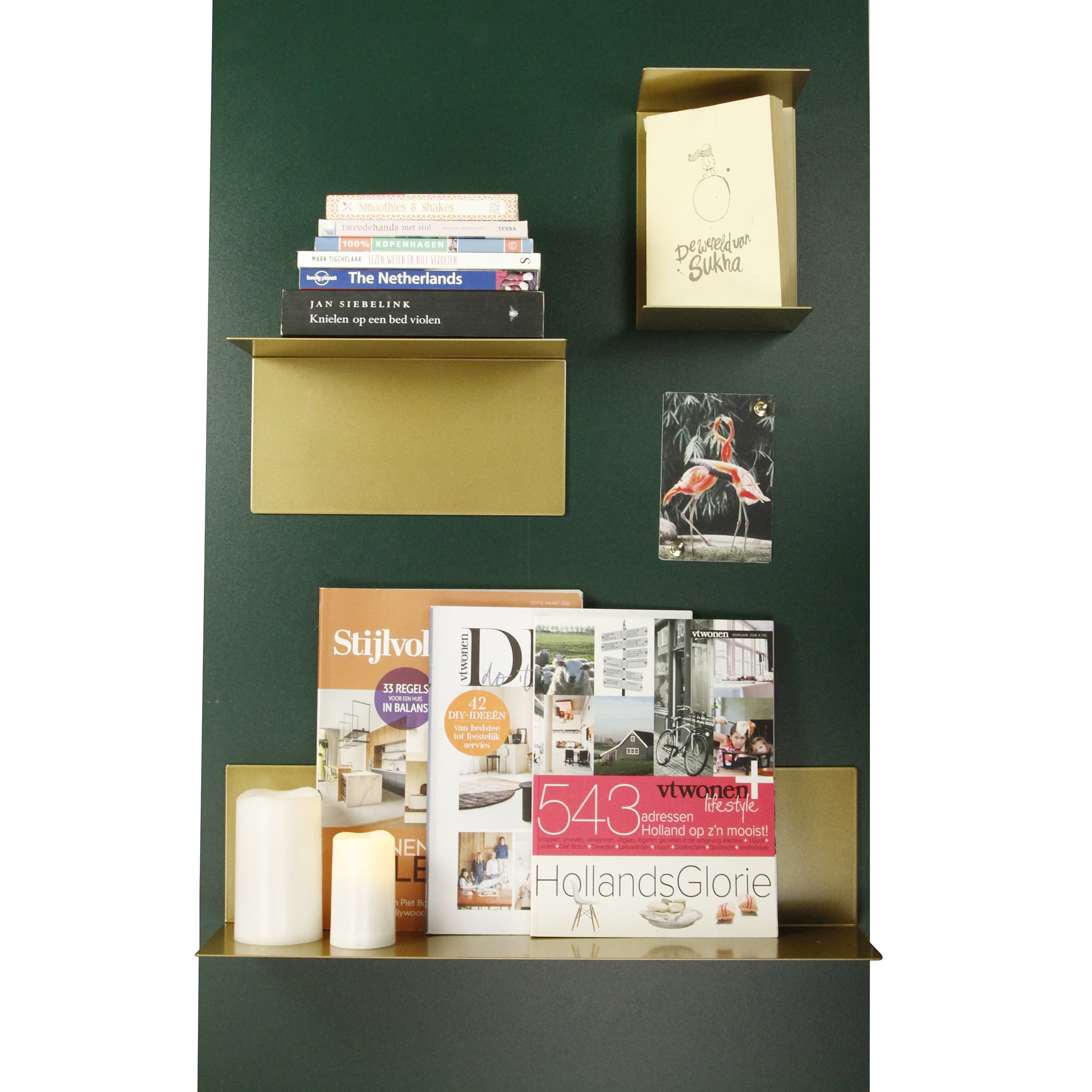 Onze magnetische wandplank goud large is ontworpen in ons atelier en geproduceerd van stevig staal, strak gecoat in goud. Echt een mooi exemplaar op je magneetbord of magneetwand.