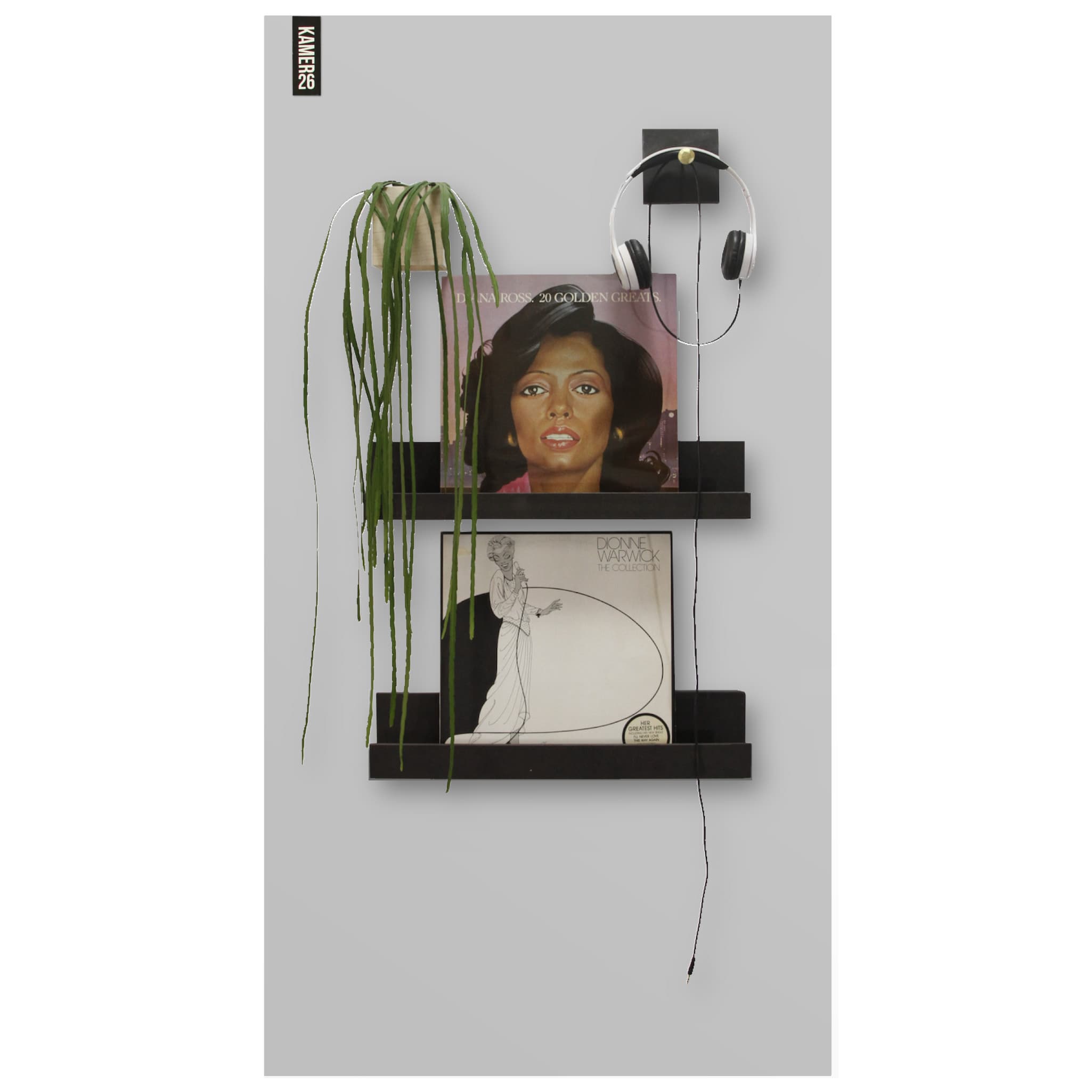 1. zijgriphouders zwart of RVS look (geen gaten in het magneetbord), het magneetbord hangt ca 1 cm van de muur af.