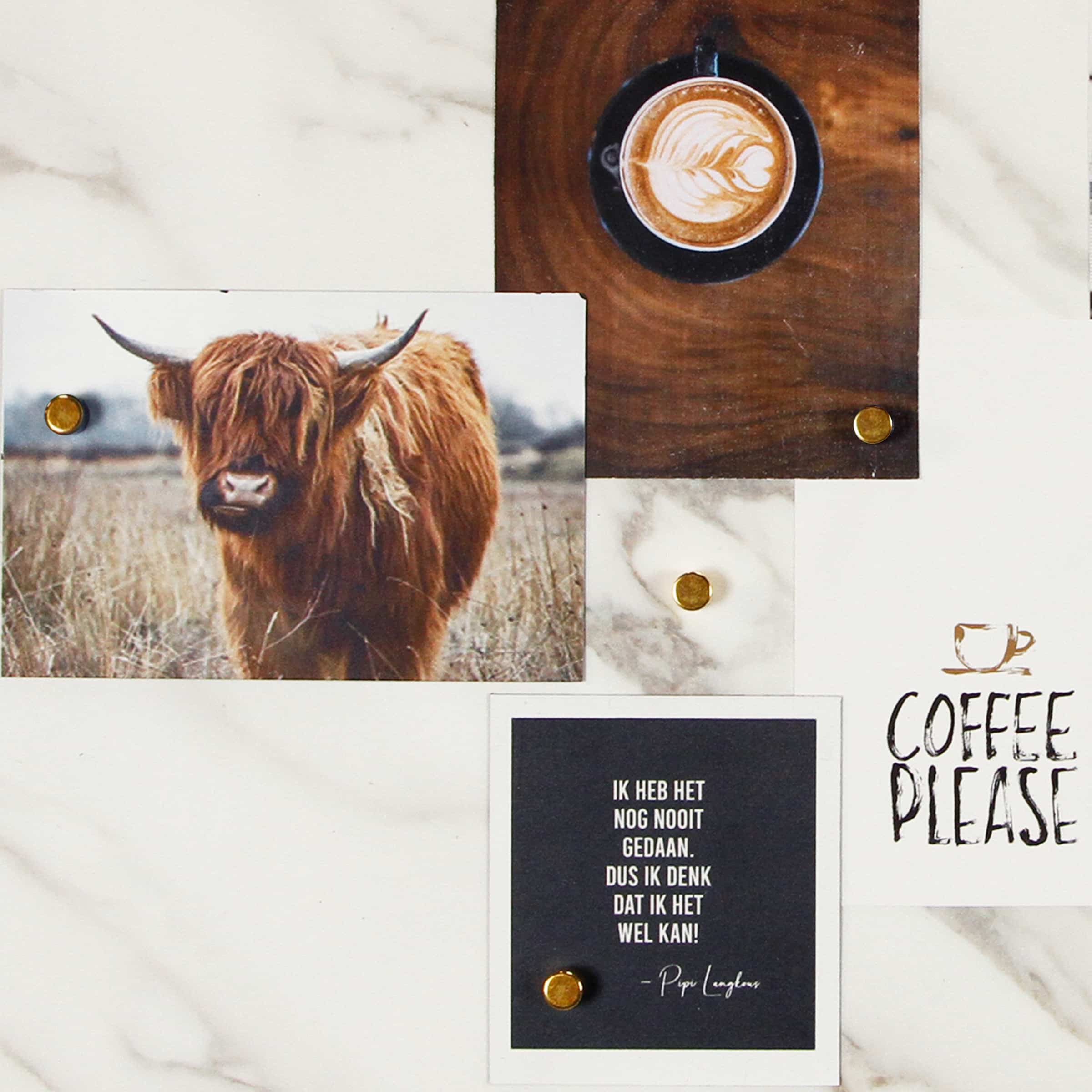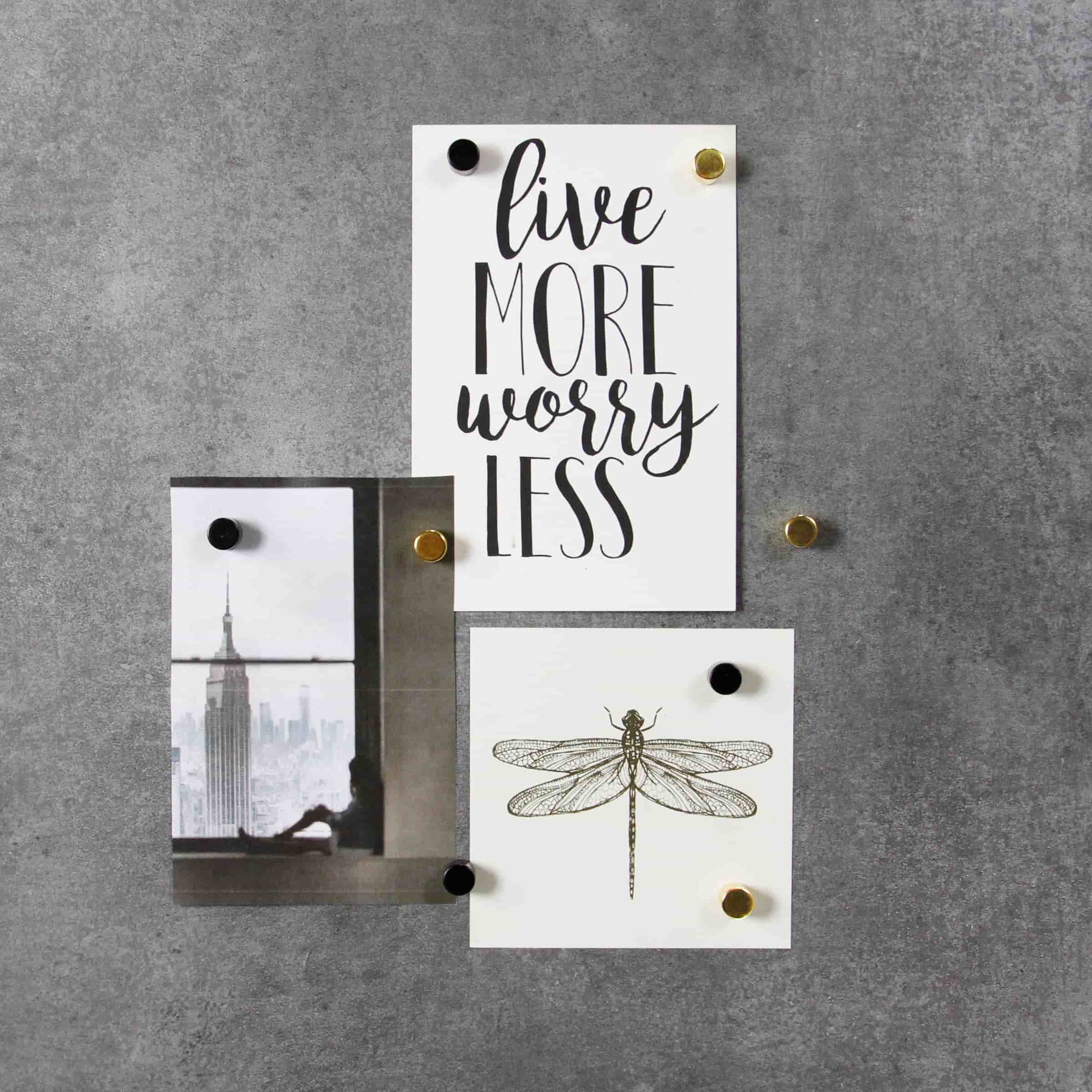 Ik ben fan van de neodymium magneten! Ze zijn super sterk, meerdere velletjes papier blijven moeiteloos hangen met één magneet. De gouden kleur staat ook super mooi bij mijn marmer witte magneetbord, heel chique.